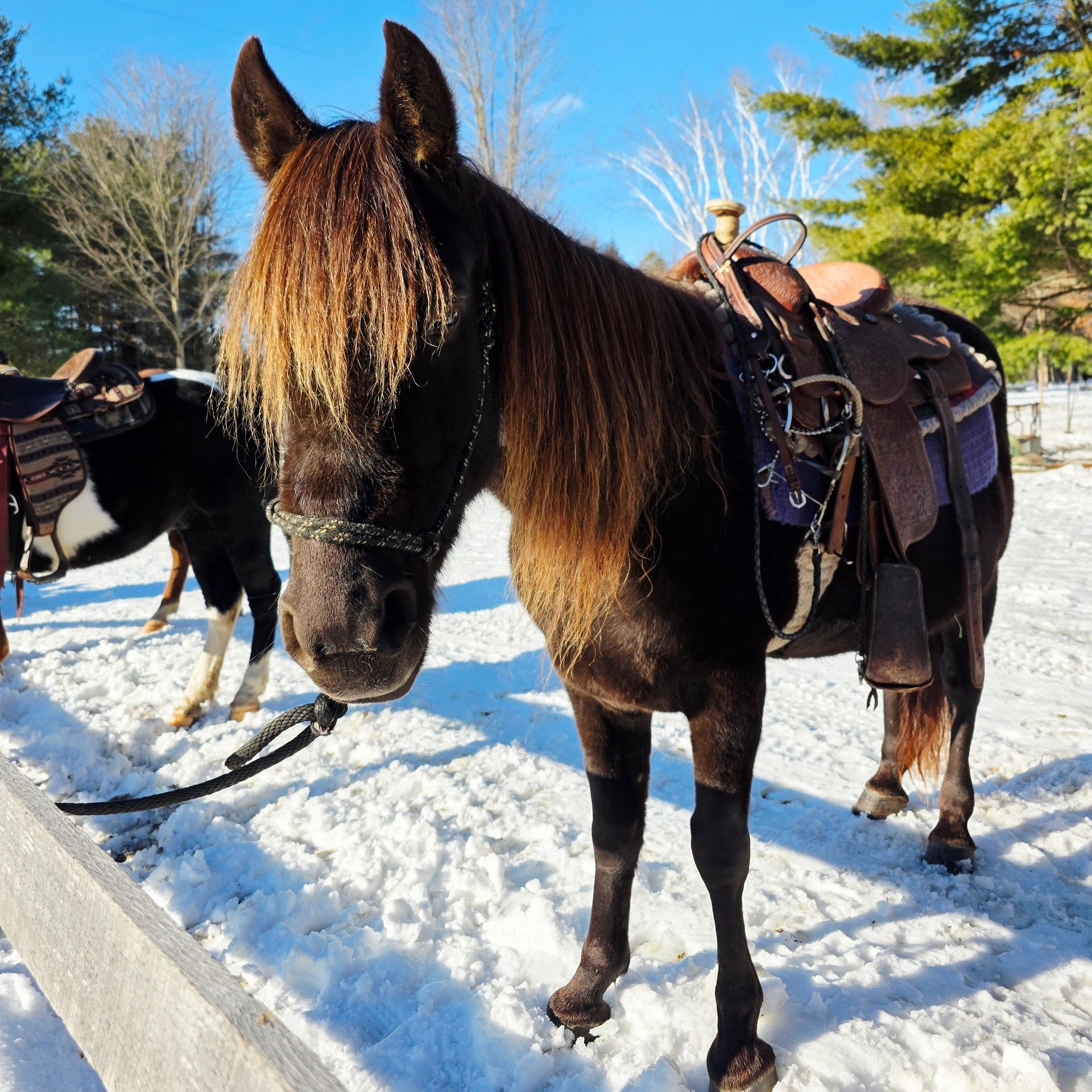 Bonnie is a 12 yo standard bred bay mare standing at 15.1hh.